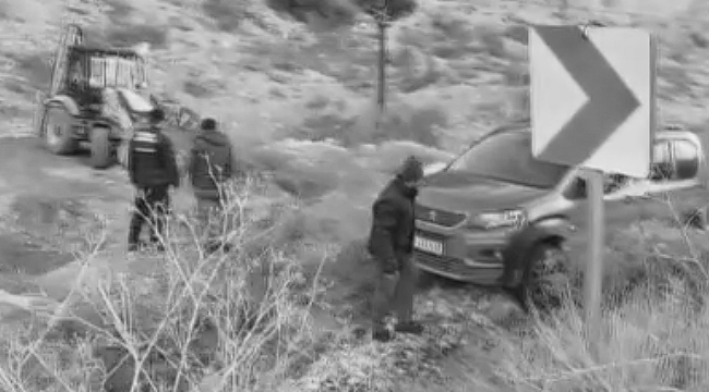 Erzurum-Artvin karayolunda buzlu yolda tutanamayarak kayan araç yol kenarına uçtu.
