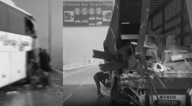 Erzurum'u Pasinler ilçesine bağlayan karayolunda bir yolcu otobüsü yoğun siz nedeniyle seyir halindeki tıra arkadan çarptı.
