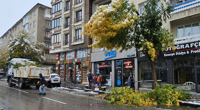 Gece yağan kar havanın sıcak olması yüzünden kentte çok saayıda ağa dallarını kırdı. Belediye ekipleri kırılan ağaç dallarını keserek temizledi.