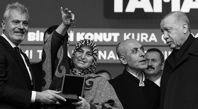 Cumhurbaşkanı Erdoğan, 6 Şubat depremlerinin ardından deprem bölgesine gelip ahkâm kesenlerin, seçimlerde bedava ev sözü verenlerin olduğunu anımsatarak, "Enkazların önünde selfie çekip sosyal medyadan atanlar vardı. Afetzedelerimizin üzüntüsünü içtenlikle paylaşmak yerine, deprem turisti gibi ortalıkta dolananlar vardı. 'Hükûmet bu enkazın altında kalır' diyerek tüm umutlarını bizim başarısız olmamıza bağlayanlar vardı. Yalan ve yanlış haberlerle ortalığı karıştırmaya çalışan provokatörler vardı. Biz canımızı dişimize takıp yaraları sarmak için ter dökerken, yüzyılın felaketini istismar eden vicdansızlar vardı. Sırf seçimlerde oy vermediler diye depremzedelerimize hakaret edenler, konakladıkları misafirhanelerden kovanlar vardı. Bakın şimdi onların hiçbirisi ortalıkta yok. Deprem turistleri yok, popülizm yapanlar yok. Seçim kazanmak uğruna halkımızı vaat yağmuruna tutanlar yok. Reyting peşinde koşanlar yok. Dezenformasyon yayanlar yok. 'Evleri mültecilere verecek' diyenler yok. Devletle milleti karşı karşıya getirmeye çalışanların hiçbirisi yok. Ama biz buradayız. Sizlerle beraberiz. Tıpkı 6 Şubat'ta olduğu gibi sizin yanınızdayız" ifadelerini kullandı.