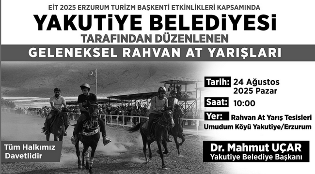 EİT 2025 Erzurum Turizm Başkenti Etkinlikleri kapsamında yapılacak yarışlar, Umudum Mahallesi’ndeki Rahvan At Yarış Tesislerinde saat 10'00'da başlayacak.